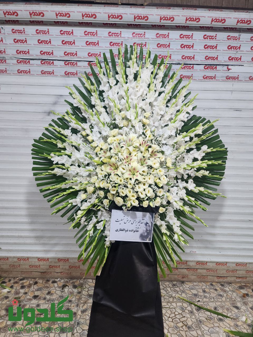 50شاخه گلایل؛اورینتال،لیسیانتوس،زنبوری سفید، تزیین در پایه چوبی یک طبقه