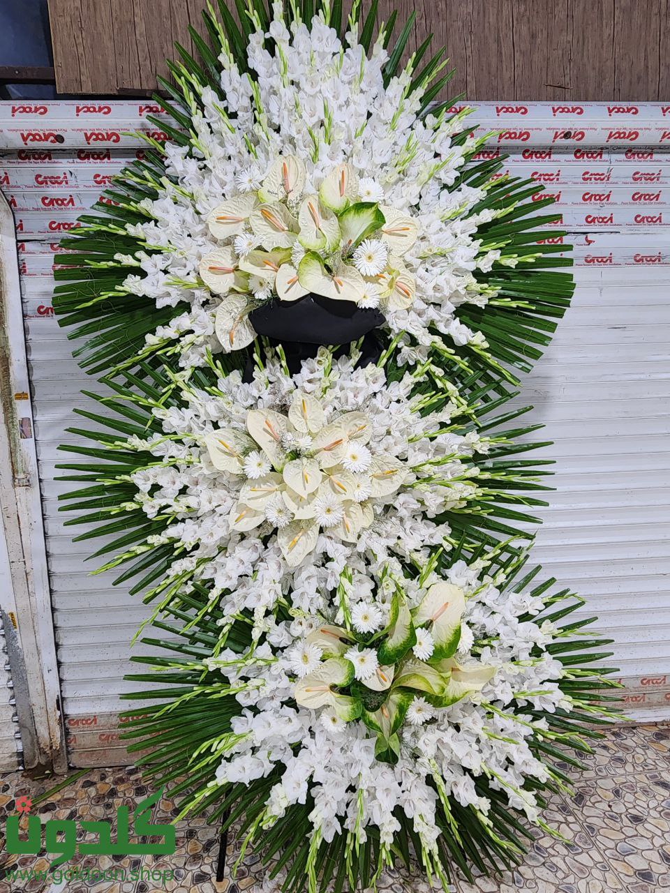150شاخه گلایل،36شاخه انتریم، 30شاخه ژربیرا،تزیین در پایه فلزی 3طبقه