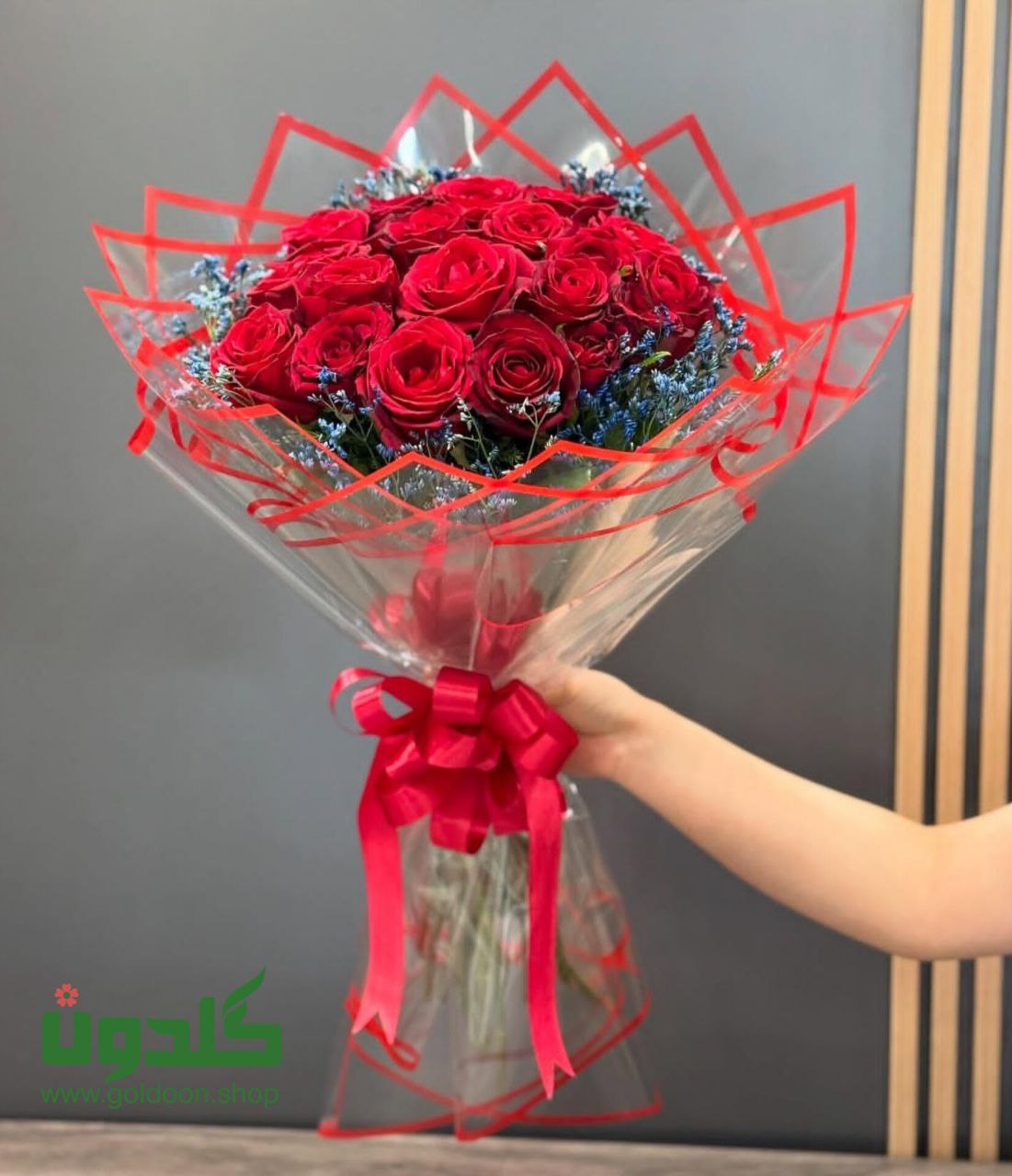 20شاخه رز هلندی قرمز،تزیین با کاغذ ضد آب