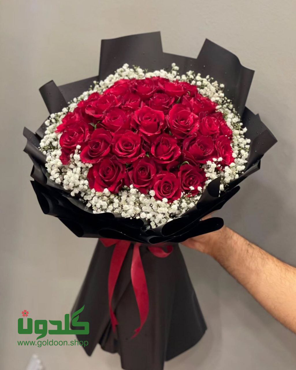 40شاخه رز هلندی ممتاز، ژیپسوفیلیا، تزیین با کاغذضد آب