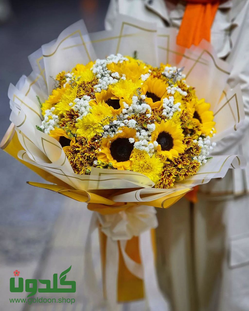 9شاخه افتابگردان، داوودی مینیاتوری،ژیپسوفیلیا،تزیین با کاغذضد آب